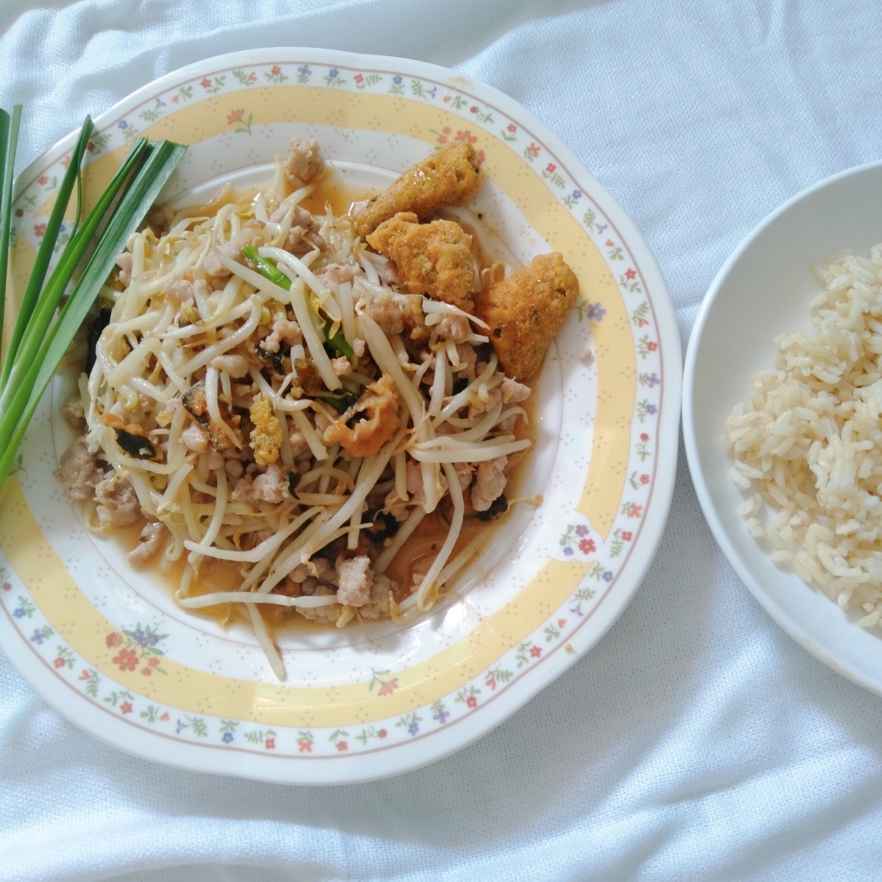 Stir Fried Minced Pork and Soy Bean Sprouts